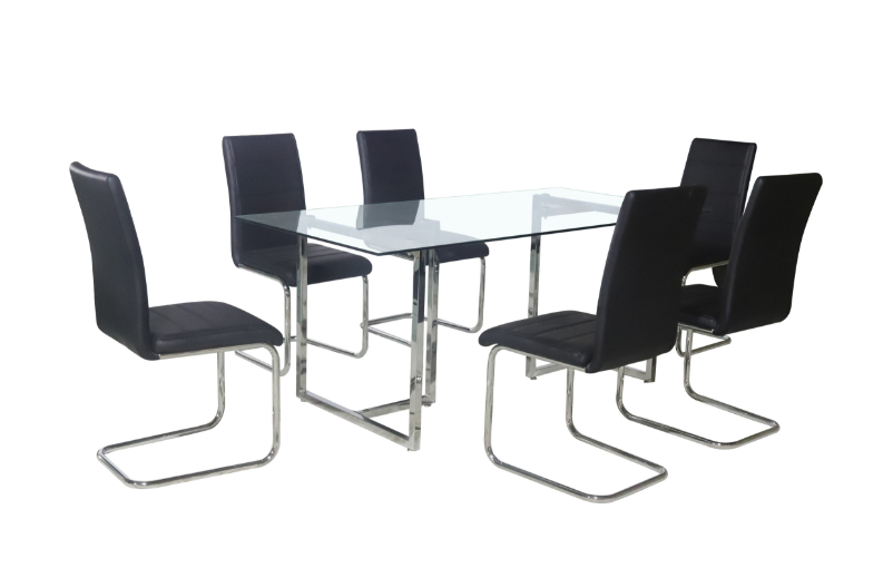 | 1- Dining Table [2 Box] 6-Dining Chairs [1Box] | Chairs Black,Gray and White | 7 Pieces 730 |